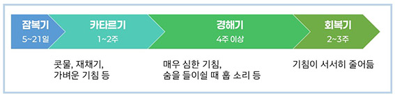 백일해 증상은 크게 카타르기, 경해기, 회복기의 3단계로 나타납니다.