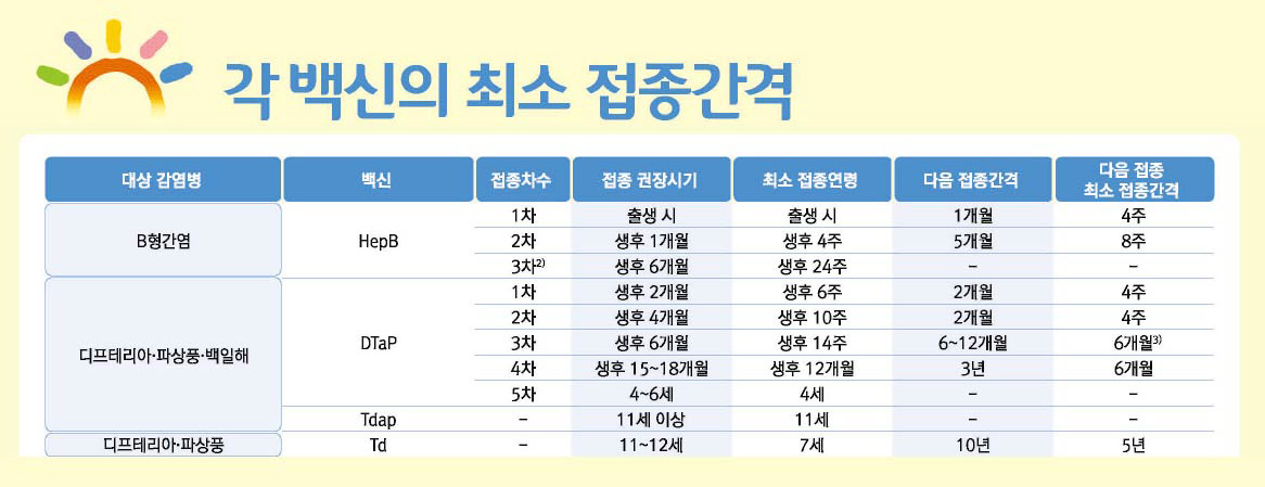 ✅ 기초접종: 1차: 생후 2개월, 2차: 생후 4개월, 3차: 생후 6개월